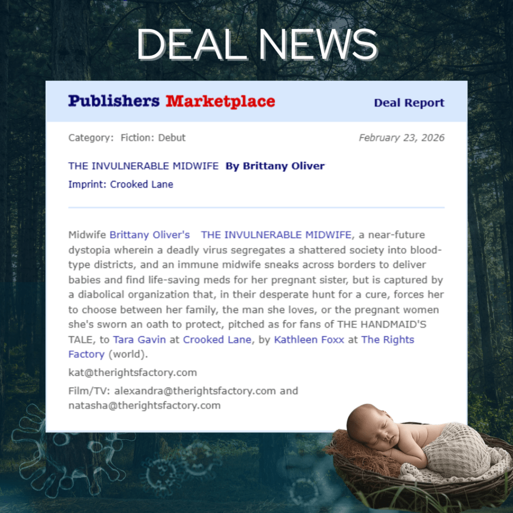 Books sold with Brittany: THE INVULNERABLE MIDWIFE (sold to Crooked Lane Books in Feb 2026, publishing date TBA)