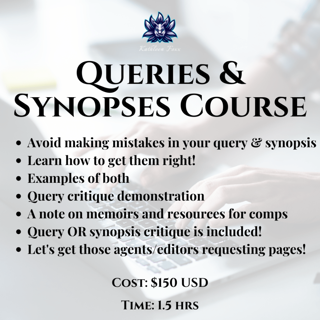 From time to time, I offer pre-recorded courses (and sometimes webinars!). This started as a service offered with Foxx Editorial, and I plan to continue offering these. I have loved attending them or watching them when other agents have offered them, and I’m so happy to now offer them in a future-agent capacity as well.