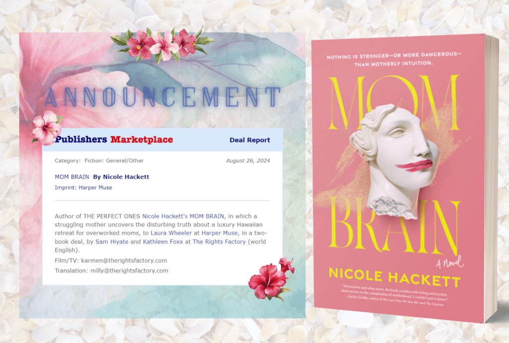 Books sold with Nicole: MOM BRAIN (sold to Harper Muse in summer 2024, forthcoming in April 2026, in a 2-book deal)